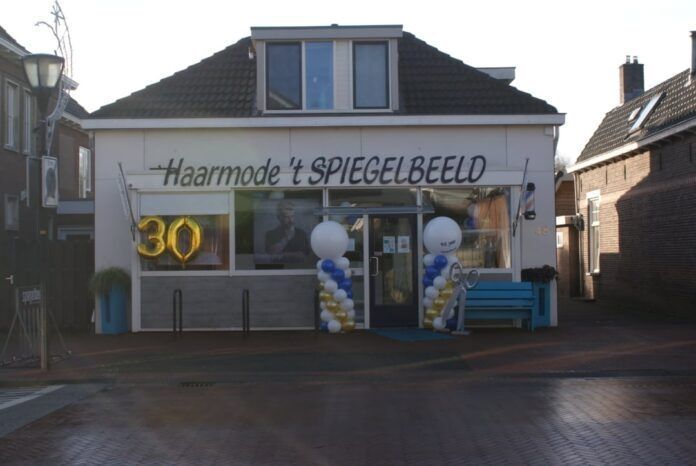 Haarmode ’t Spiegelbeeld in Heino vindt wel dat je de buitenwereld mag laten weten dat je al 30 jaar actief bent. Daarom is vandaag door Clown Knapie een mooie boog van ballonnen geplaatst om toch even stil te staan bij deze bijzondere mijlpaal. En achter de schermen is vast nog wel een gebakje genuttigd…