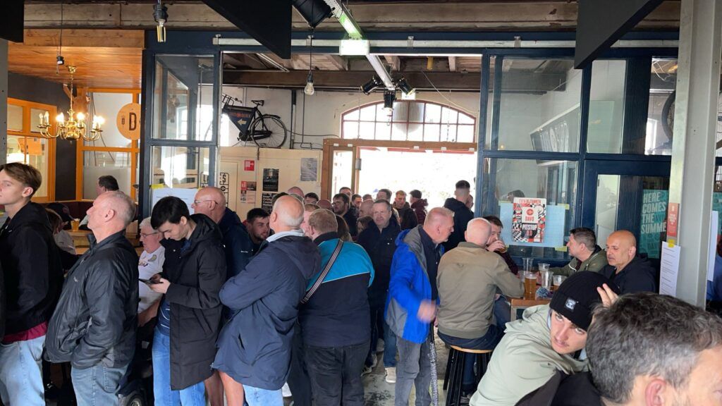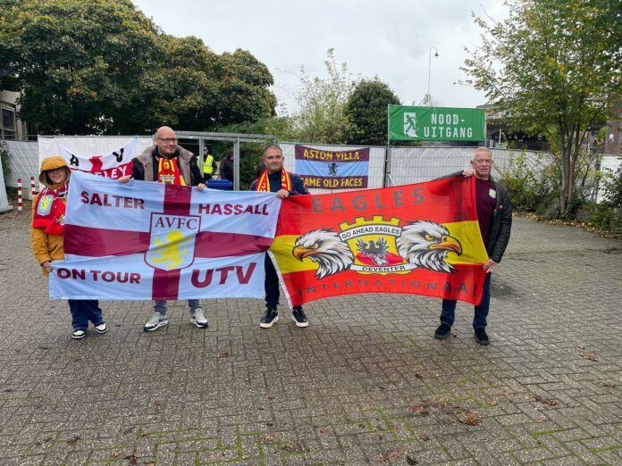 De uitsupporters van de Engelse club Aston Villa verzamelen zich bij bierbrouwerij DAVO. De club uit Engeland wordt vanavond in de Adelaarshorst ontvangen door Go Ahead Eagles. Het is voor de ploeg van Melvin Boel de derde wedstrijd in Europees verband.