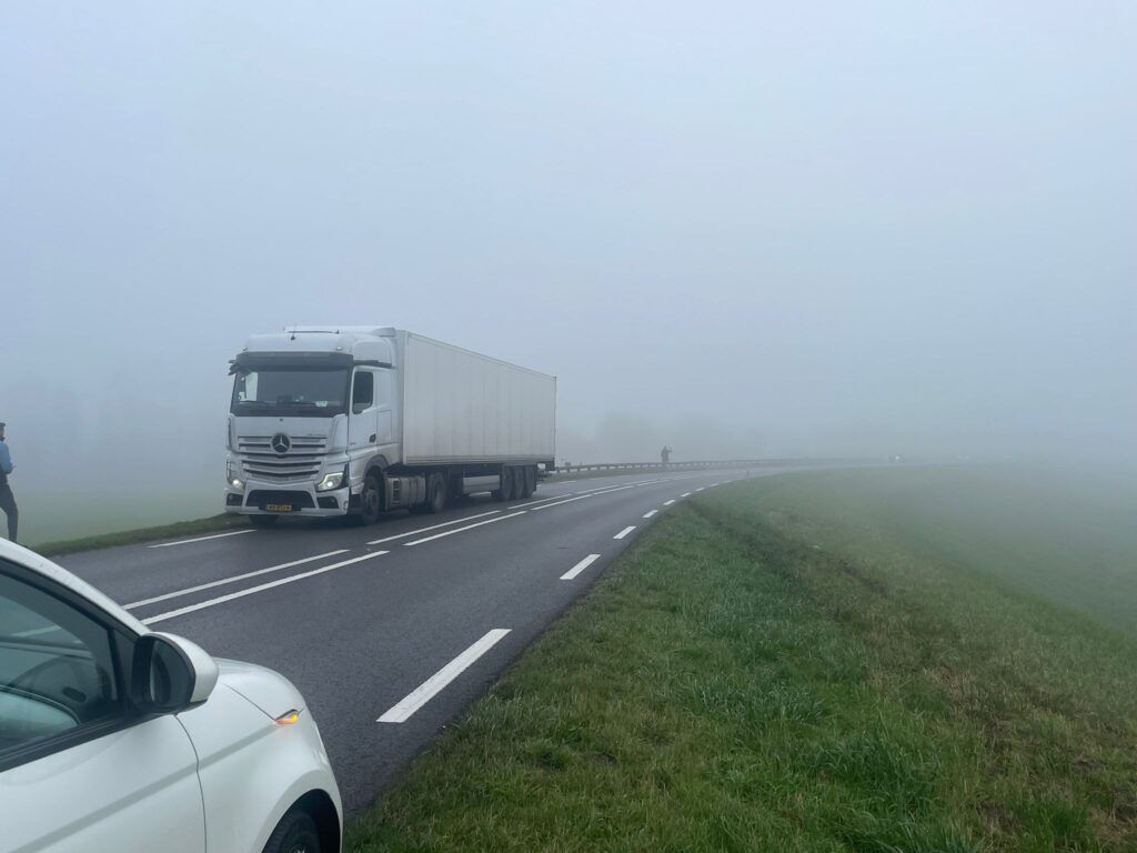 Er is vanochtend tussen 10.00 uur en 11.00 uur een auto van de IJseldijk af gereden. Dit gebeurde tussen Den Nul en Olst. Door de dikke mist is de zichtafstand op de weg sterk verminderd. Waarschijnlijk schrok de bestuurder van de auto van een remmende vrachtwagen en is vervolgens van de dijk afgeraakt. Volgens getuigen heeft de auto lichte schade opgelopen.