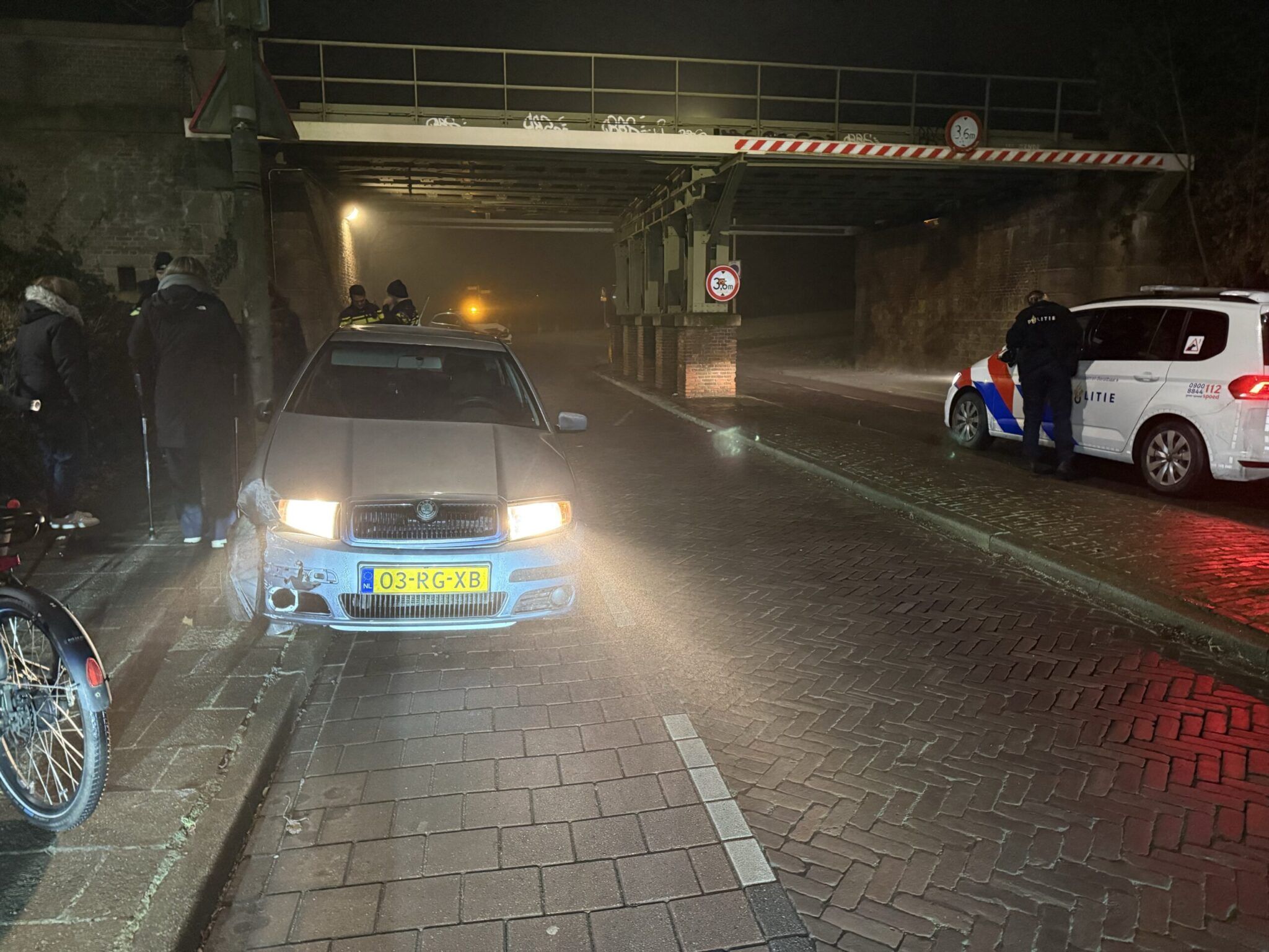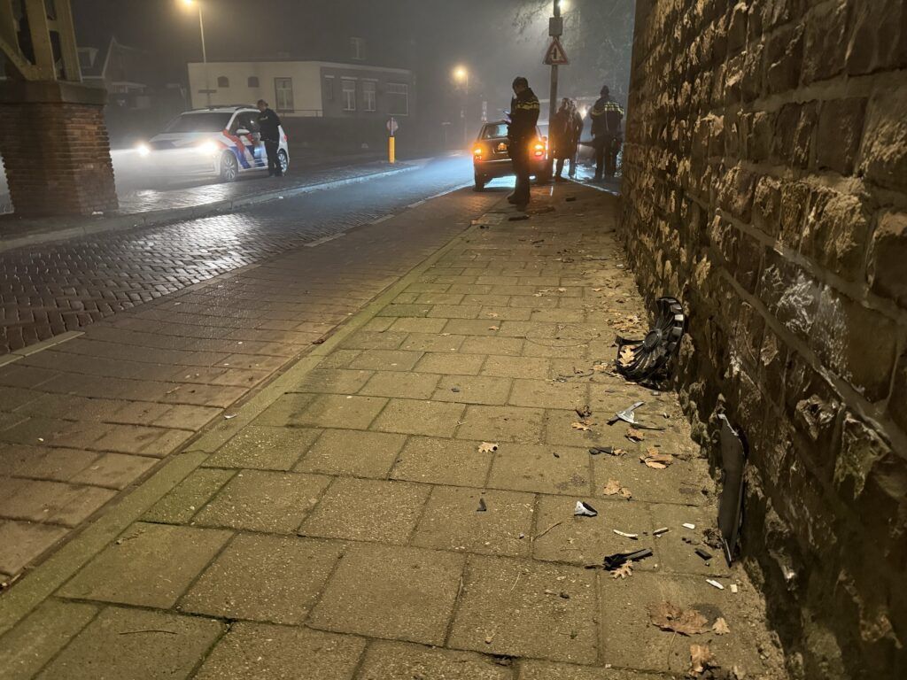 Ter hoogte van het spoorviaduct, nabij de kruising met de Rijsterborgherweg raakte de auto vanwege de gladheid in een slip. De auto gleed op de spekgladde klinkers weg en belandde tegen de wand van het viaduct. Het voertuig liep hierdoor flinke schade op.