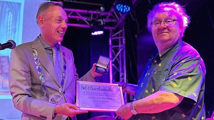 Organist Ton Zwartkruis heeft afgelopen zondag de Deventer Stadspenning in ontvangst mogen nemen. Hij kreeg de Stadspenning vanwege zijn jarenlange inzet voor muziek, cultuur en educatie. Burgermeester Ron König heeft hem in De Hip de penning overhandigd.