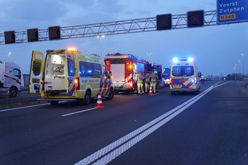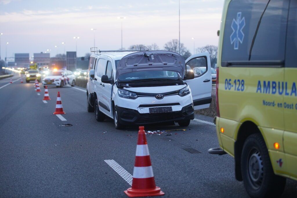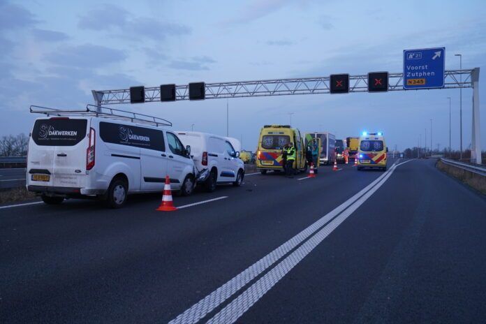 Op de A1, richting Deventer/Apeldoorn, zijn donderdagochtend vier bestelbussen achter op elkaar gebotst. Dat gebeurde ter hoogte van de A50 richting Arnhem/Zwolle. Twee bestuurders zijn per ambulance vervoerd naar het ziekenhuis. Over hun toestand is niets bekend. Door de botsing ontstond een file van 16 kilometer.