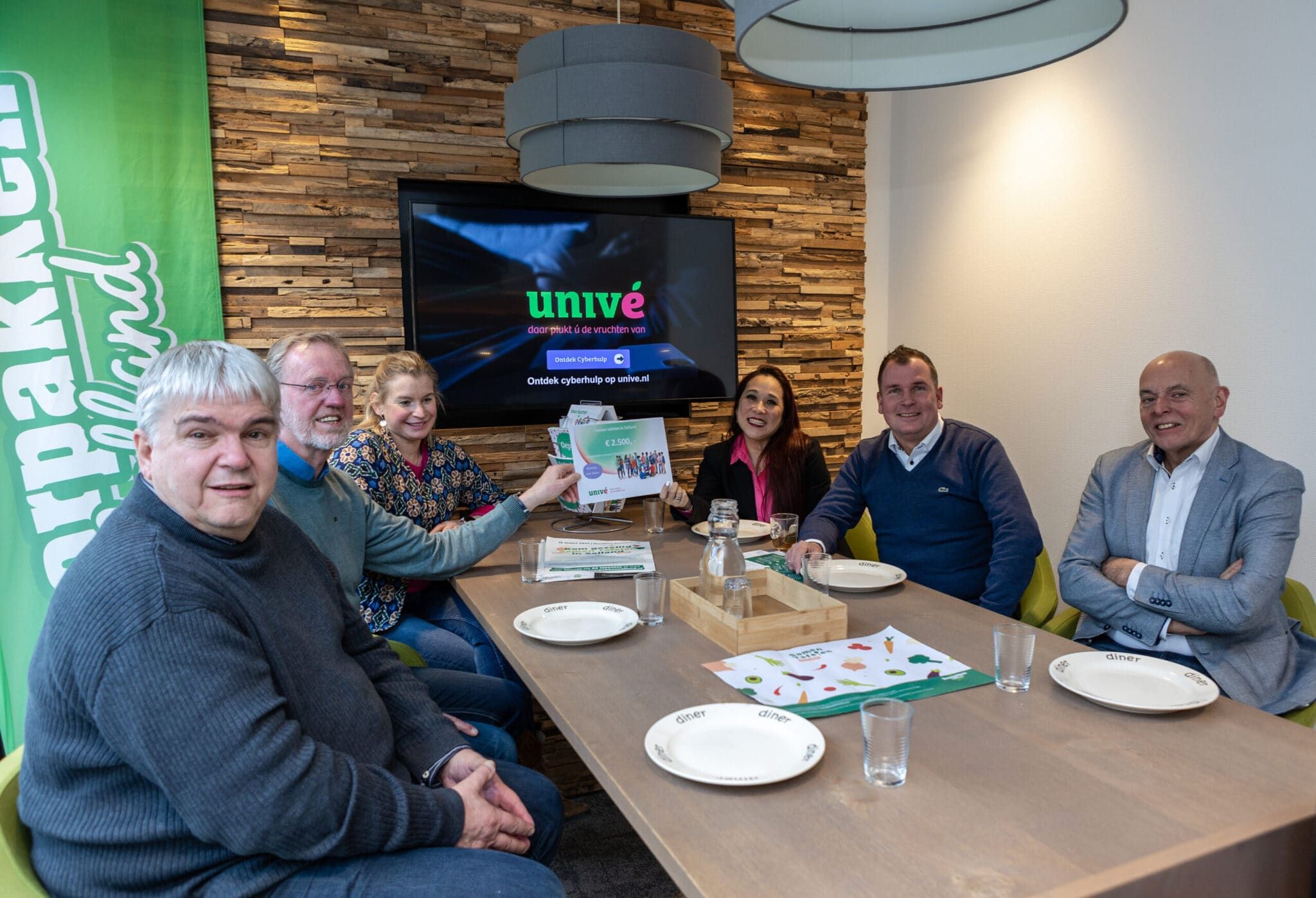 Samen met een aantal collega’s besloten Johnny Zweers en Carla Thé van De Univé winkel in Raalte om hun eindejaars attentie te doneren aan het initiatief Samen Tafelen in Salland. De bijbehorende cheque van € 2.500 werd afgelopen vrijdag overhandigd aan Stichting Doorpakken Salland.