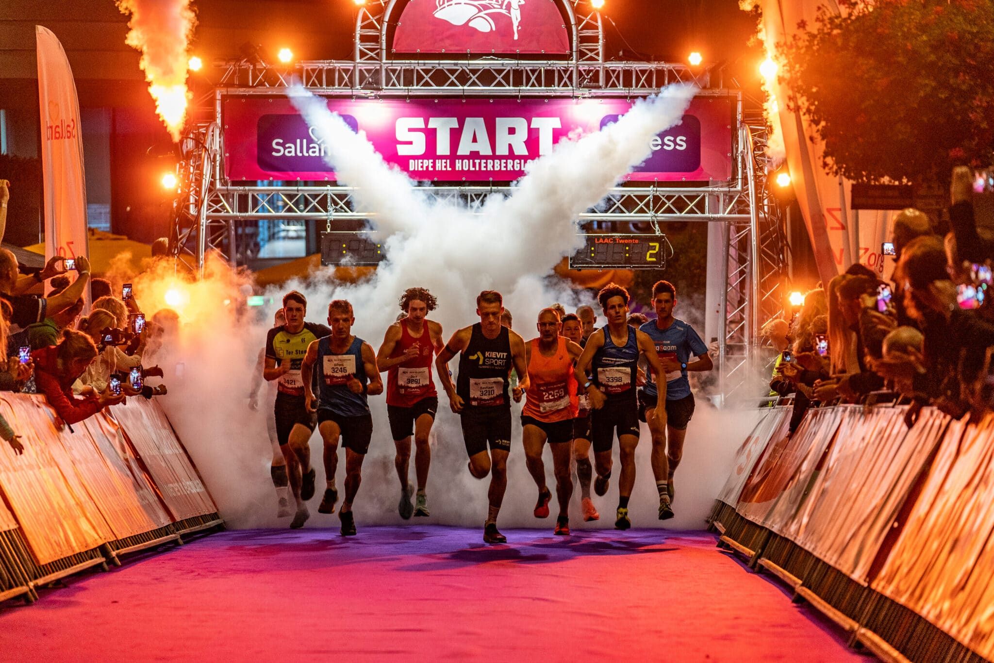 Het was echt een groot feest in het centrum van Holten. Het begon al fantastisch met de Sans-Online 6 km op zaterdagavond. De snelste dame was Fleur Baljet met 22:27 minuten en de snelste heer was Bram Koppenaal met een tijd van 19:18 minuten. Het vuurwerk, de lampjes in het donker, de uitgelichte gekleurde bomen en tot slot een afterparty met DJ Rudi maakt het feestje compleet. ‘We zijn bijzonder blij over de Nightrun. We hadden op deze afstand ruim 50 meer deelnemers dan vorig jaar’, vertelt Hans Stokvis, voorzitter van de organisatie.