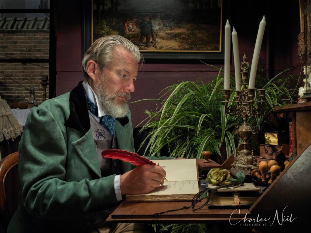 “Toen we in augustus 2021 een besluit moesten nemen over het Dickens Festijn van dat najaar, was ons al snel duidelijk dat een groot Dickens Festijn er niet in zou zitten. De pandemie was nog lang niet onder controle, en met zoveel duizend mensen op een koude winterdag zou het risico te groot zijn.” Volgens Martijn Westerbrink, directeur-bestuurder Evenementenbureau dEVENTer. “Dit gaf tegelijkertijd een kans. Als een regulier Dickens niet kan, wat dan wel? De hoorspel wandeling ontstond door een combinatie van ideeën en was binnen het team direct een succes. Het écht kunnen vertellen van de Dickens verhalen uit zijn boeken, in combinatie met het Bergkwartier en de spelers die altijd meedoen aan het festijn kwamen samen. De verhaallijnen en scenes zijn op kantoor uitgedacht samen met Emmy Strik. Het Theaterschip heeft dit vervolgens omgezet in een hoorspel en de opnames daarvoor geleid. Daarna zijn de foto’s gemaakt door Charles Niël.”
