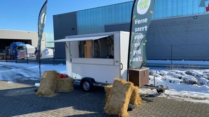 Snertkar rijdt langs ondernemers