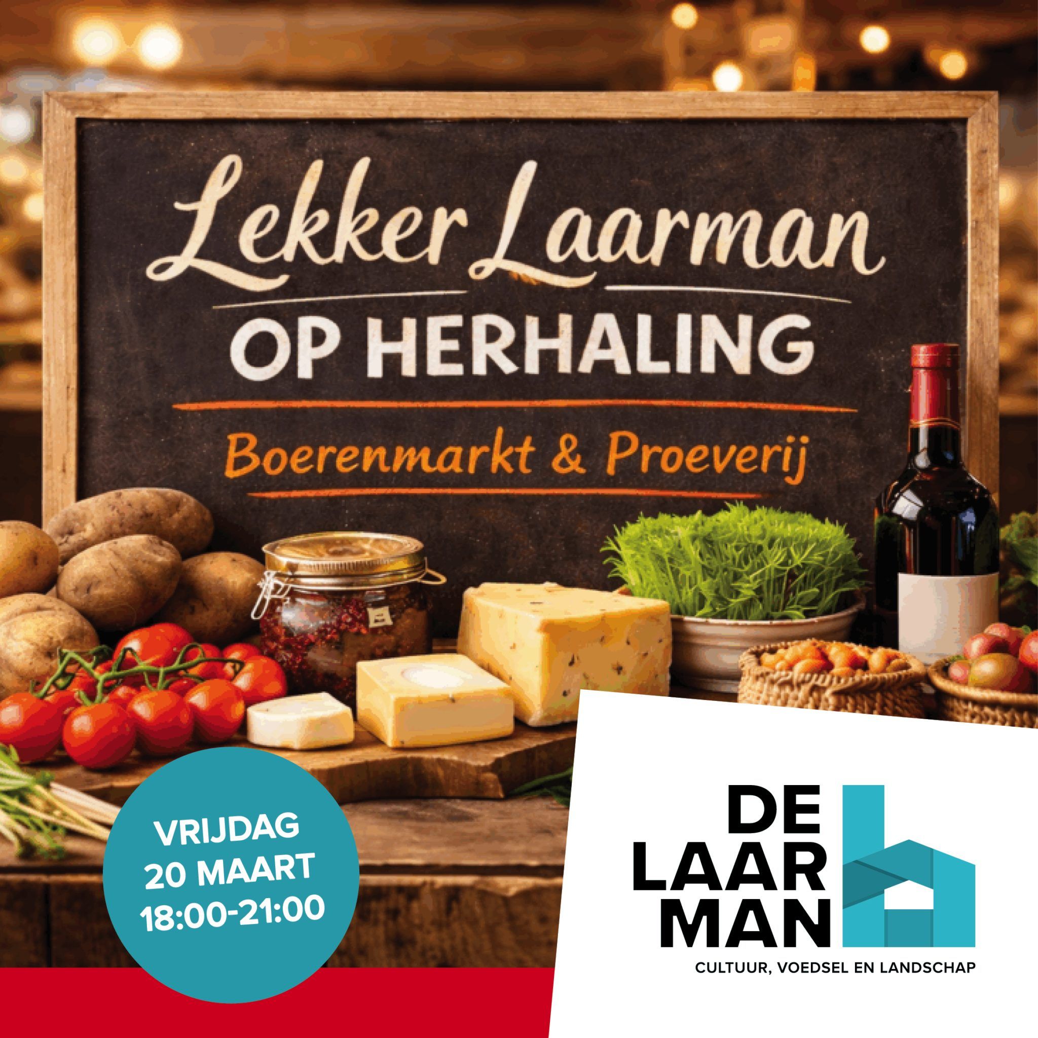 Museum De Laarman veranderd op vrijdag 20 maart van 18:00 tot 20:00 uur in een indoor boerenmarkt met proeverij ‘Lekker Laarman’ op herhaling. Tijdens de markt kun je kennismaken met pure streekproducten uit Salland en proeven van de gerechten die ermee gemaakt kunnen worden. De markt wordt georganiseerd door het museum zelf.