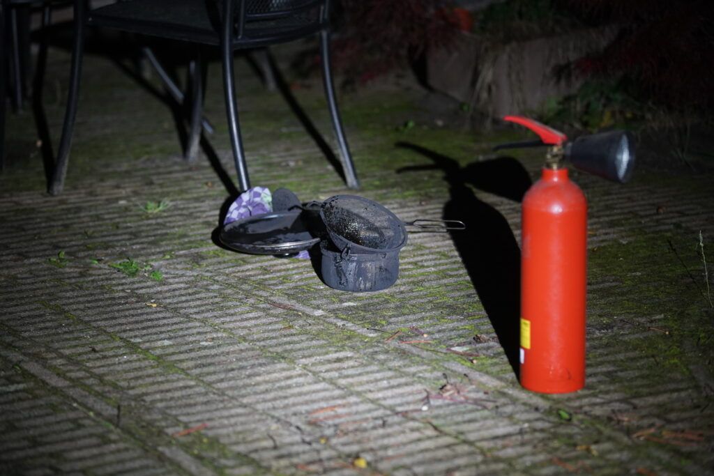 Een alerte buurman schoot te hulp met een brandblusser. Daarmee wist hij te voorkomen dat de brand verder om zich heen greep, maar helemaal uit was het vuur nog niet. De brandweer heeft het vuur vervolgens geblust en de woning geventileerd. Om er zeker van te zijn dat het vuur niet verder was doorgeslagen, is een deel van het plafond in de keuken opengebroken.