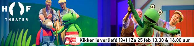 Kikker en zijn vriendjes, bekend van de boeken van Max Velthuijs, zijn al ruim 30 jaar favoriet onder kinderen. Eigenlijk is Kikker het gelukkigst in zijn eigen fijne huis aan de rivier, maar avontuur is ook leuk! Dus maakt hij nu weer een uitstapje naar het theater. In de spiksplinternieuwe, spetterende familiemusical Kikker is verliefd! Duik je mee met Kikker en zijn vriendjes in een vrolijk, muzikaal avontuur! Er zijn twee voorstellingen: om 13.30 en 16.00 uur. Kaarten kosten €19,50.