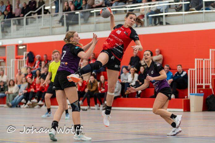 MHV met een uitstekend spelende Lieke van Baal en Jante van Katwijk nam vanaf het begin het initiatief en stond het na 10 minuten spelen 3-7 voor. Na een eerste time-out draaide Kwiek de score om en speelde het in een veel hoger tempo. Bij rust was de stand 19-12 door meerdere doelpunten van Lizz Olde Bolhaar, Paris Scholten en Alysa Korterink en was de basis voor de overwinning gelegd.