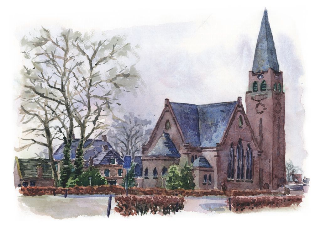 Vanaf het moment dat Wanders zich in Heino vestigde, is hij begonnen met het schilderen van al die plekken die het dorp kleur geven. “Dat komt omdat ik altijd al de ambitie had om in Heino te gaan schilderen. Mijn eerste schilderij hier was van de katholieke kerk. Het was toen midden in de winter en ik stond daar met bevroren vingertjes alle details te schilderen,” herinnert hij zich. “Vervolgens wilde de waterverf door de extreme kou niet drogen. Het was lastig, maar ik kies er zelf voor om altijd op locatie te werken. Daardoor voelde het maken van dit schilderij ook als een overwinning. De somberheid en het grauwe van die dag is goed teruggekomen in het schilderij.”