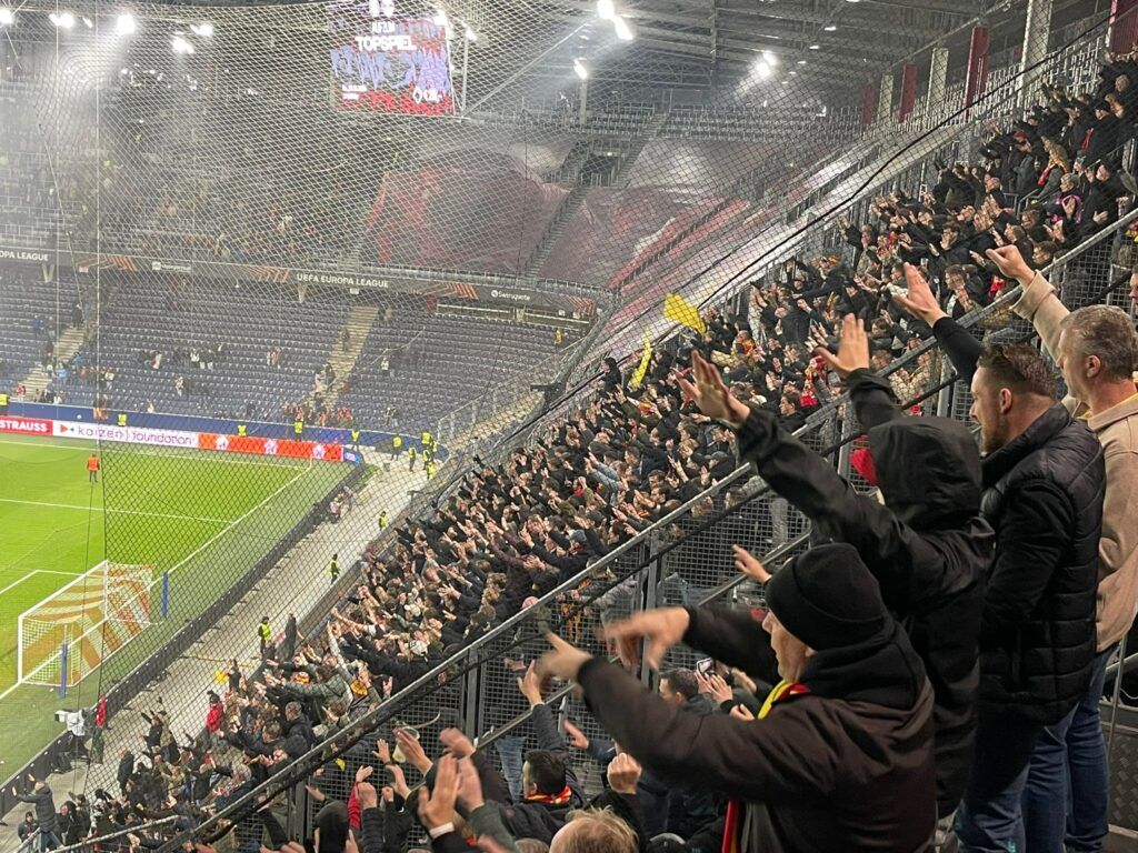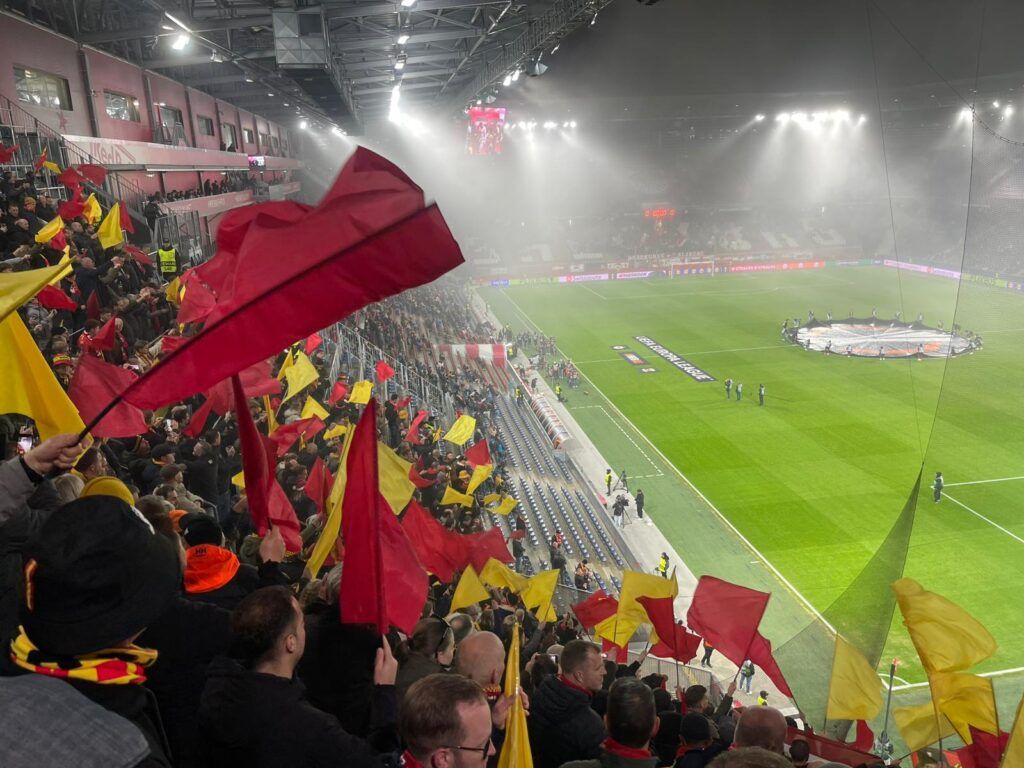 De ploeg van Melvin Boel speelde in het speciale Europa League-tenue in wit met groen. In de avond werd het snel kouder, waardoor zowel spelers als supporters wolkjes lucht uitbliezen.