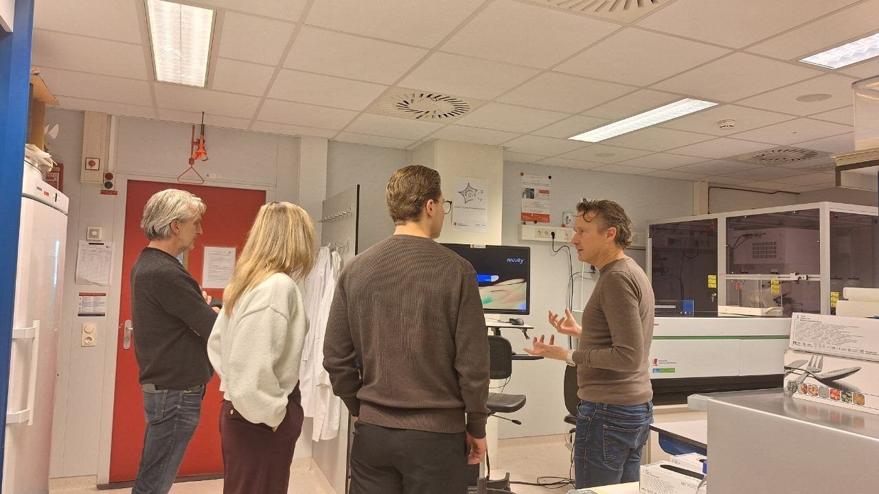 Al geruime tijd is er contact met de onderzoekers in het Erasmus MC. Ze fietsen geregeld een route mee en zijn aanwezig tijdens het evenement in juni. Afgelopen zaterdag ging Noa samen met haar vriend en André op bezoek bij dr. Pim French. Pim was bereid om uit te leggen wat ze allemaal in het laboratorium doen, en vooral ook, waar de onderzoeken plaatsvinden.