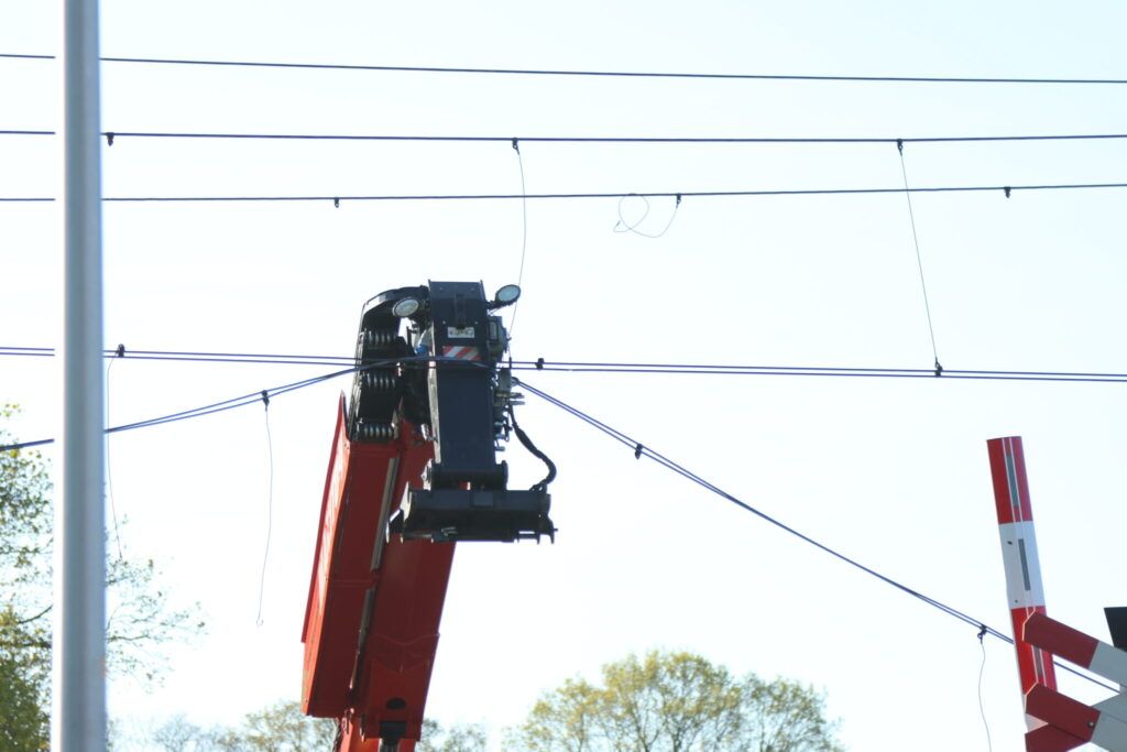 De schade ontstond bij een spoorwegovergang nabij Wierden. Een hoogwerker op een aanhanger raakte hier de bovenleiding. Dit gebeurde, nadat de combinatie vast kwam te zitten. Bij een poging om los te komen, schoot de kraan omhoog.