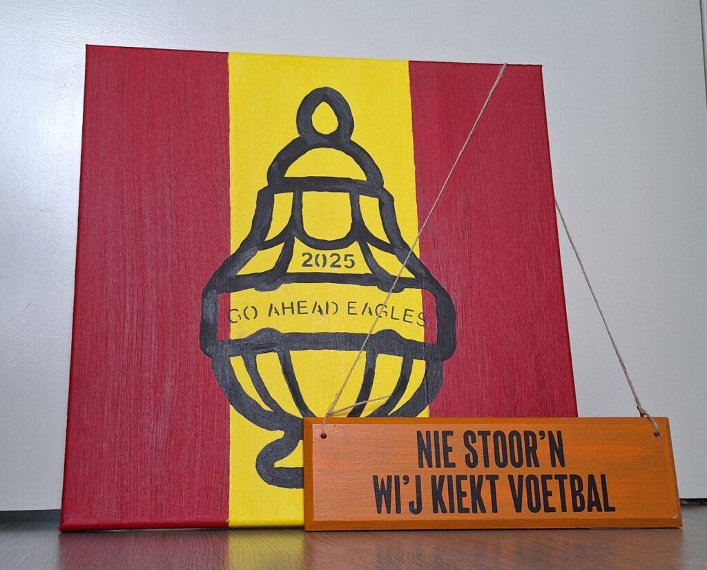 “Wij gaan altijd met een vaste groep van acht jongens naar de Eagles. We kennen elkaar al sinds we vijf of zes jaar oud zijn. We kwamen bij elkaar in het voetbalteam van VV Diepenveen,” vertelt Gijs. De meesten speelden vroeger voetbal of spelen nu nog steeds. Gijs speelt in het eerste van Diepenveen. Zijn trainer? Patrick Kieftenbelt. Hij vertrekt vandaag samen met Erik van Luttikhuizen met het vliegtuig om morgenavond radioverslag te doen van de wedstrijd.