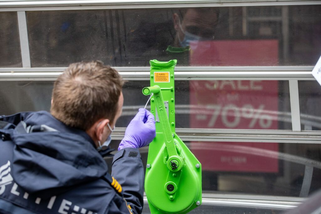 Rond 01.50 uur zagen agenten twee mannen bij het rolluik van de winkel staan. Ze voelden eraan, maar deden toen nog niets strafbaars. Toch vertrouwden de agenten het niet en noteerden hun gegevens.