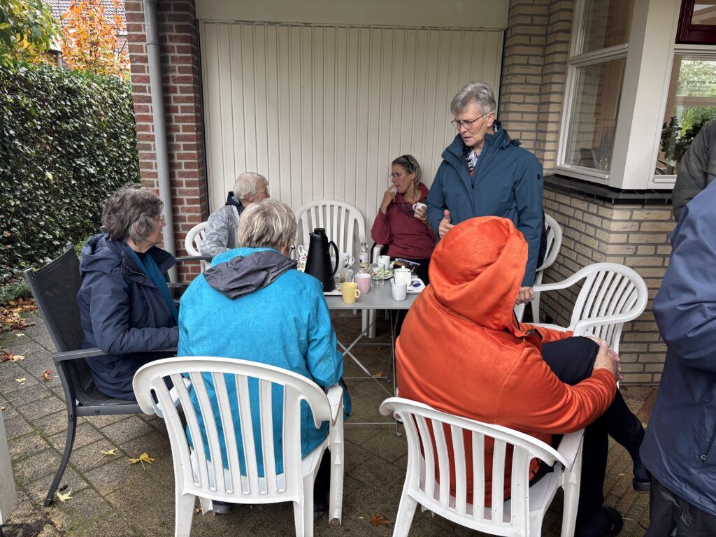 Na het harde werk verzamelen de natte regenpakken zich op de oprit van de buurvrouw op huisnummer tien, waar zelfgebakken appelcake, koffie en thee klaarstaan. Tussen de slokken door vertelt een van hen: “Sinds we zes jaar geleden zijn begonnen, heb ik zoveel meer mensen ontmoet. Er is echt een actieve buurtgroep ontstaan.”